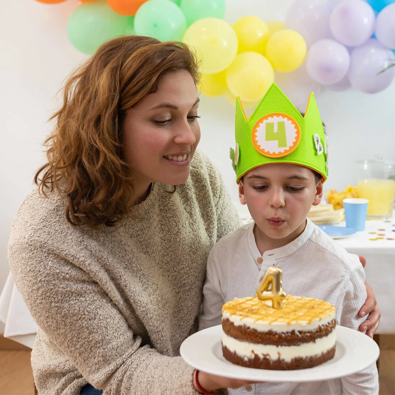 Fabricada en materiales suaves y resistentes, las coronas son un detalle de cumpleaños único con el que los niños y niñas podrán sentirse como verdaderos reyes y reinas de la fiesta. Se puede personalizar gracias a los accesorios de velcro incluido, creando así diseños únicos y adaptados a cada celebración.