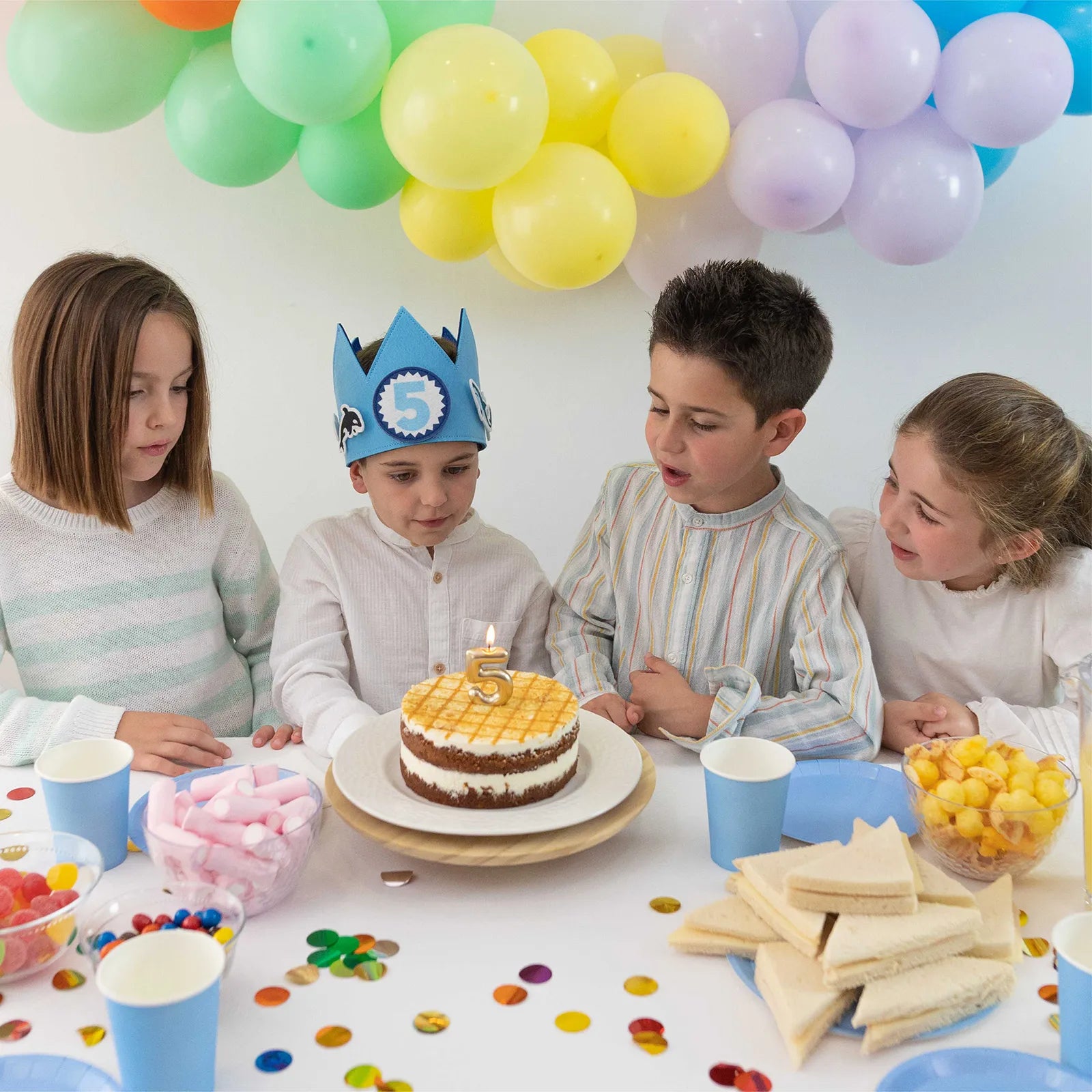 Fabricada en materiales suaves y resistentes, las coronas son un detalle de cumpleaños único con el que los niños y niñas podrán sentirse como verdaderos reyes y reinas de la fiesta. Se puede personalizar gracias a los accesorios de velcro incluido, creando así diseños únicos y adaptados a cada celebración.