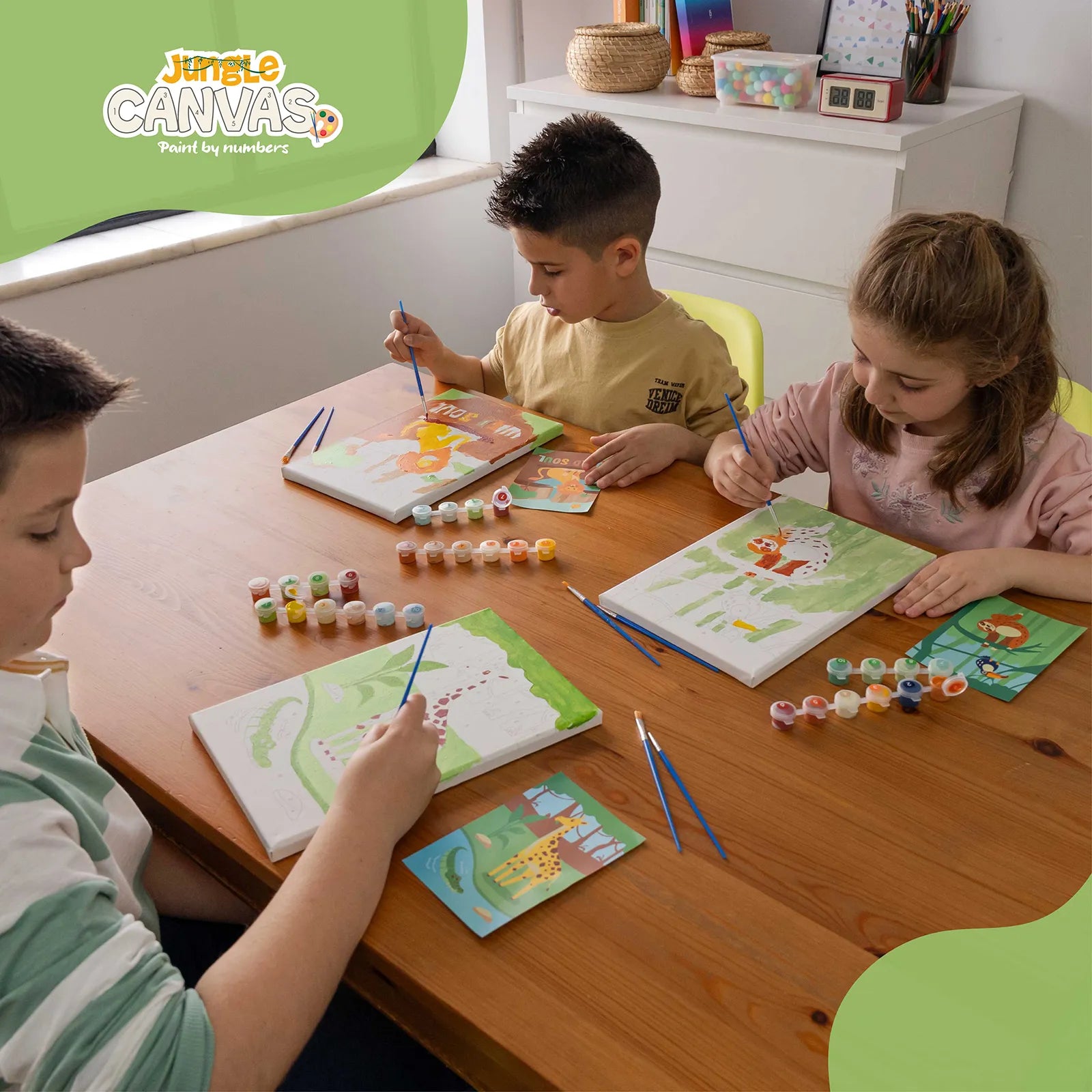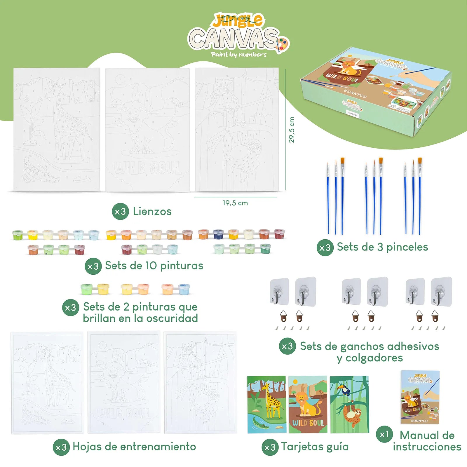 Pintar por números es un recurso guiado con el que los niños aprenderán a aplicar cada color en su sección correspondiente del lienzo de animales de la jungla, una nueva experiencia que los mantendrá entretenidos durante horas a la vez que fomenta su creatividad, paciencia y concentración, el desarrollo cognitivo, la psicomotricidad fina y la precisión.