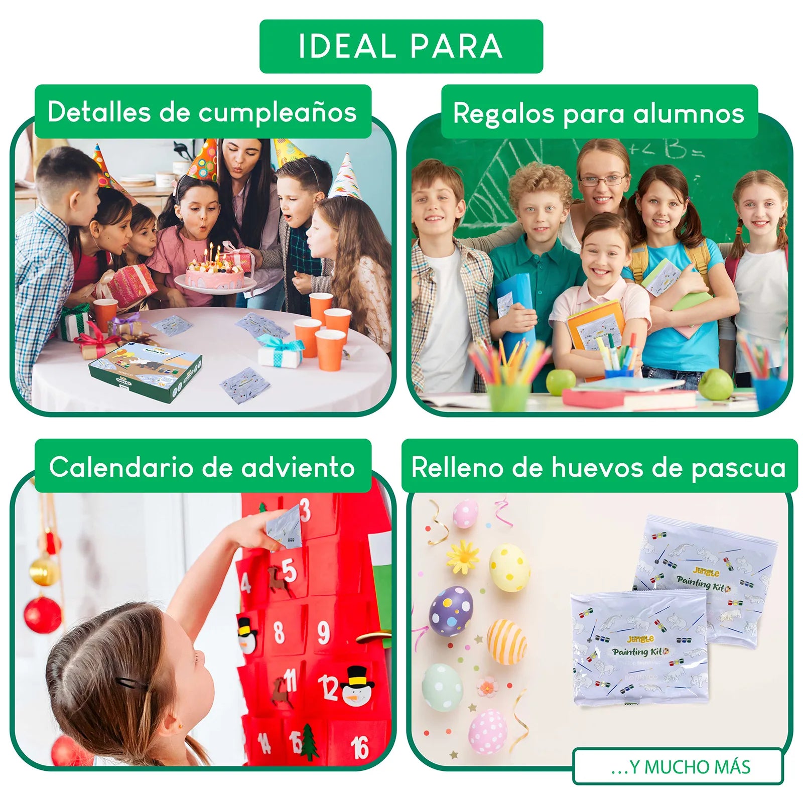 - Número de botes de pintura: 48 (16 sets de 3 pinturas)
