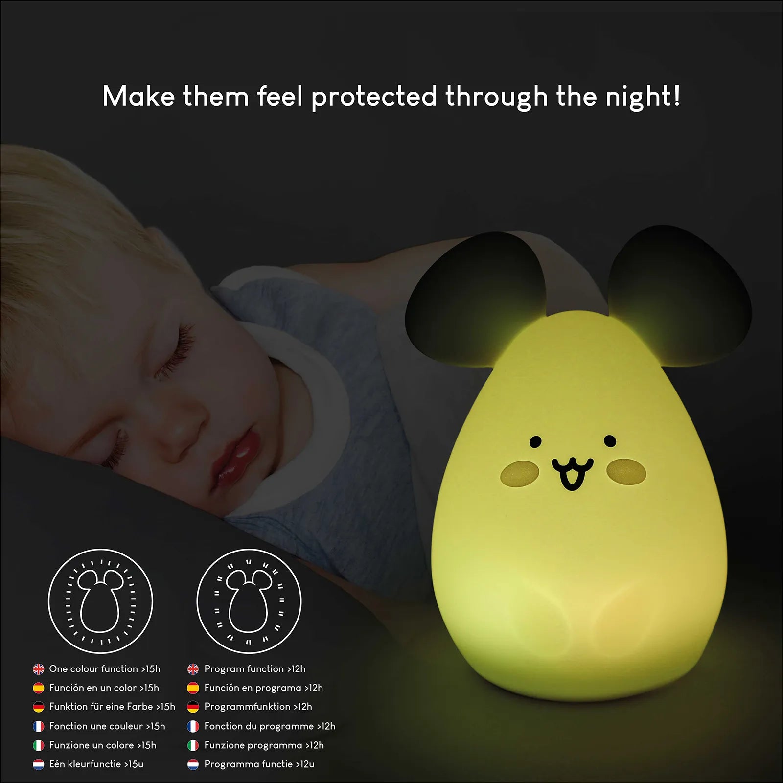 - 1 Luz nocturna infantil de ratoncito: esta lámpara está fabricada con ABS y silicona suave libre de BPA, por lo que la hace un regalo estupendo para niños pequeños.