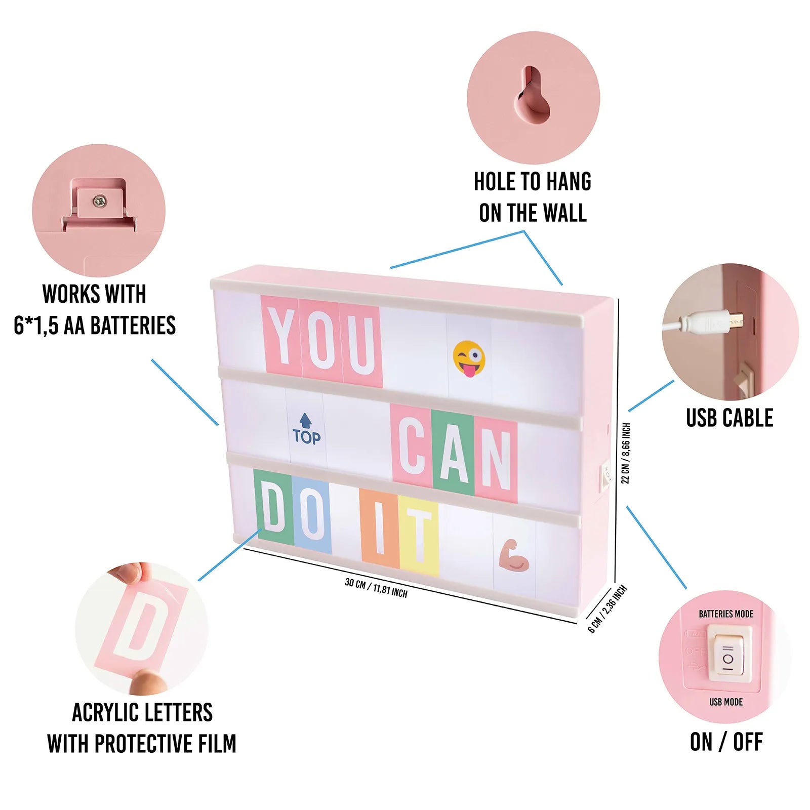 - 1 Light Box LED de color rosa: la caja de luz LED está hecha de los materiales ABS y acrílico, caracterizados por su alta resistencia, con un exterior en un bonito acabado rosa