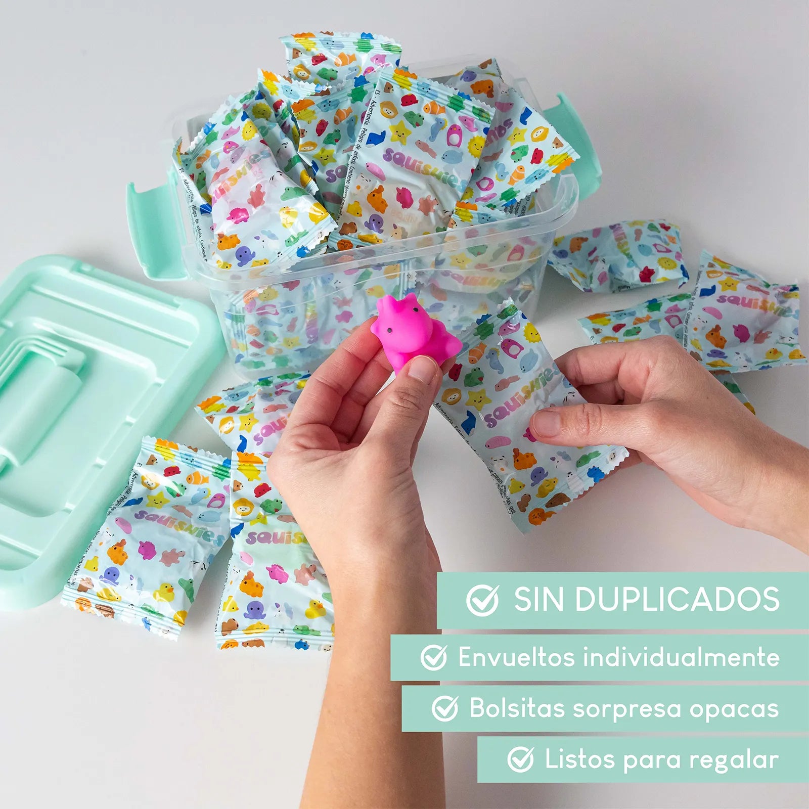 Son juguetes sensoriales que los niños pueden manipular fácilmente gracias a su tacto suave, su resistencia y elasticidad. Están pensados tanto como regalo individual como para detallitos para invitados a fiestas infantiles, por lo que incluyen bolsas sorpresa opacas ideales para mantener la expectación entre los más pequeños.