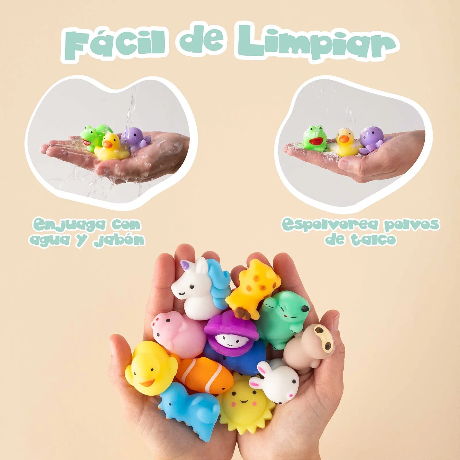 Los squishy son un juego libre de reglas y normas. Puedes jugar como quieras, creando historias únicas, viviendo aventuras o experimentado con su textura agradable. También puedes estirarlos, estrujarlos o retorcerlos. ¡Tú decides! Y si se ensucian, son fáciles de limpiar con un poco de agua y jabón.