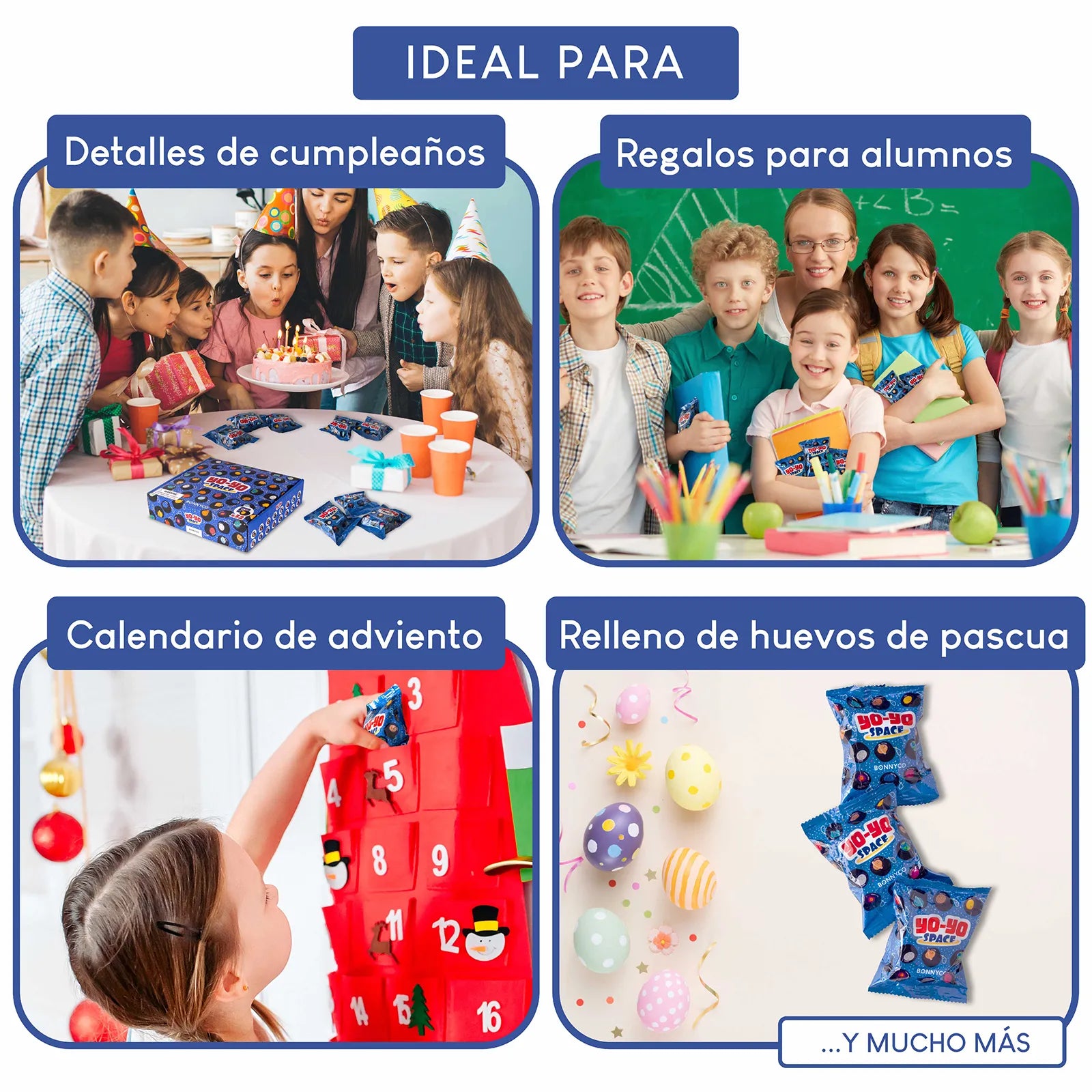 - 1 Bolsa sorpresa: todos los yoyós vienen dentro de una bolsa opaca de color azul que las convierte en emocionantes paquetes sorpresa, ya que los niños y niñas no sabrán lo que es hasta que las abran, manteniendo la expectación hasta el final